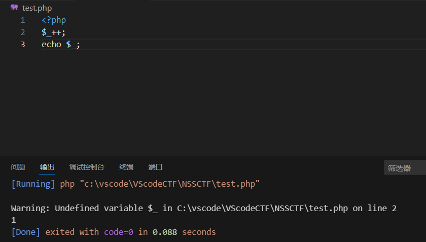 这里我们没给$_赋值,它会给自己赋值NULL=0,这时输出的就是1